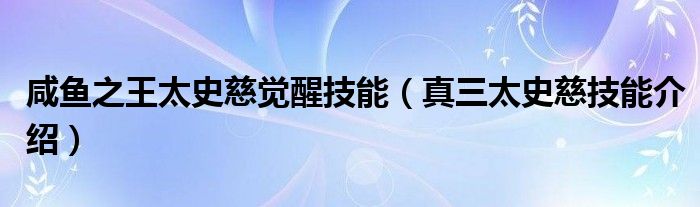 咸鱼之王太史慈觉醒技能(真三太史慈技能介绍)