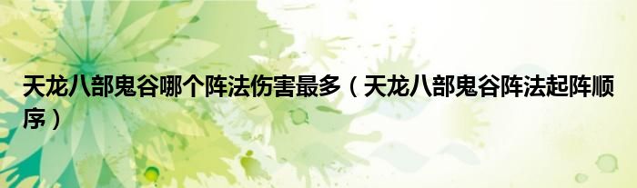 天龙八部鬼谷哪个阵法伤害最多(天龙八部鬼谷阵法起阵顺序)